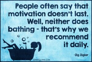 Could Zig Ziglar have said it any better? Not a chance. He nailed it with this one. Maybe he could have said “showering” instead of bathing (who takes baths anymore)? Still a great quote. Daily. Key word there. Motivation is a daily chore. Like house chores. Take a day off from motivation and your house […]